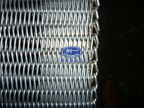 特點:此網帶由雙股左螺旋或雙股右螺旋盤條與一根串條連接而成,網帶拼接方便,網眼一般小于單股加強編織的網眼,編織牢固,不易變形,維修方便。平衡型編織網帶集中了金屬編織網帶的各種優點,由于具有彎曲教深的串條,使各個螺旋盤條的能得到正確的定位,因此,最大限度的減少網帶的變形和延伸。