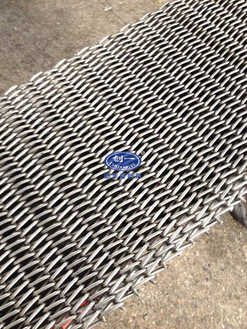 特點:此網帶由雙股左螺旋或雙股右螺旋盤條與一根串條連接而成,網帶拼接方便,網眼一般小于單股加強編織的網眼,編織牢固,不易變形,維修方便。平衡型編織網帶集中了金屬編織網帶的各種優點,由于具有彎曲教深的串條,使各個螺旋盤條的能得到正確的定位,因此,最大限度的減少網帶的變形和延伸。
